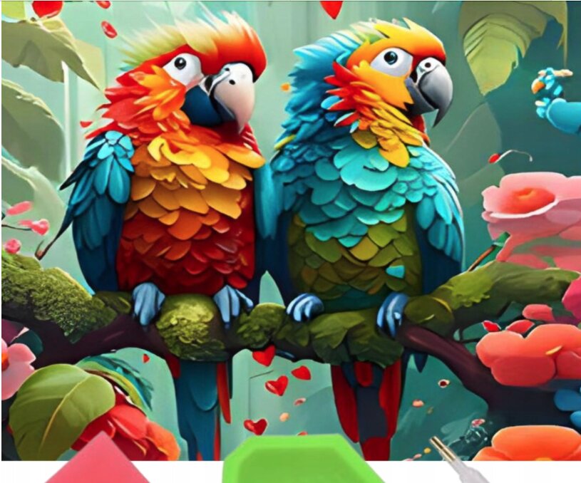 Objavte radosť z tvorenia a relaxu s diamantovým maľovaním! Vytvorte si očarujúci trblietavý obraz papagájov v kvetoch, ktorý prinesie do vášho domova farby a lesk. Tento kreatívny zážitok vás pohltí a výsledkom bude originálna dekorácia, na ktorú budete hrdí.