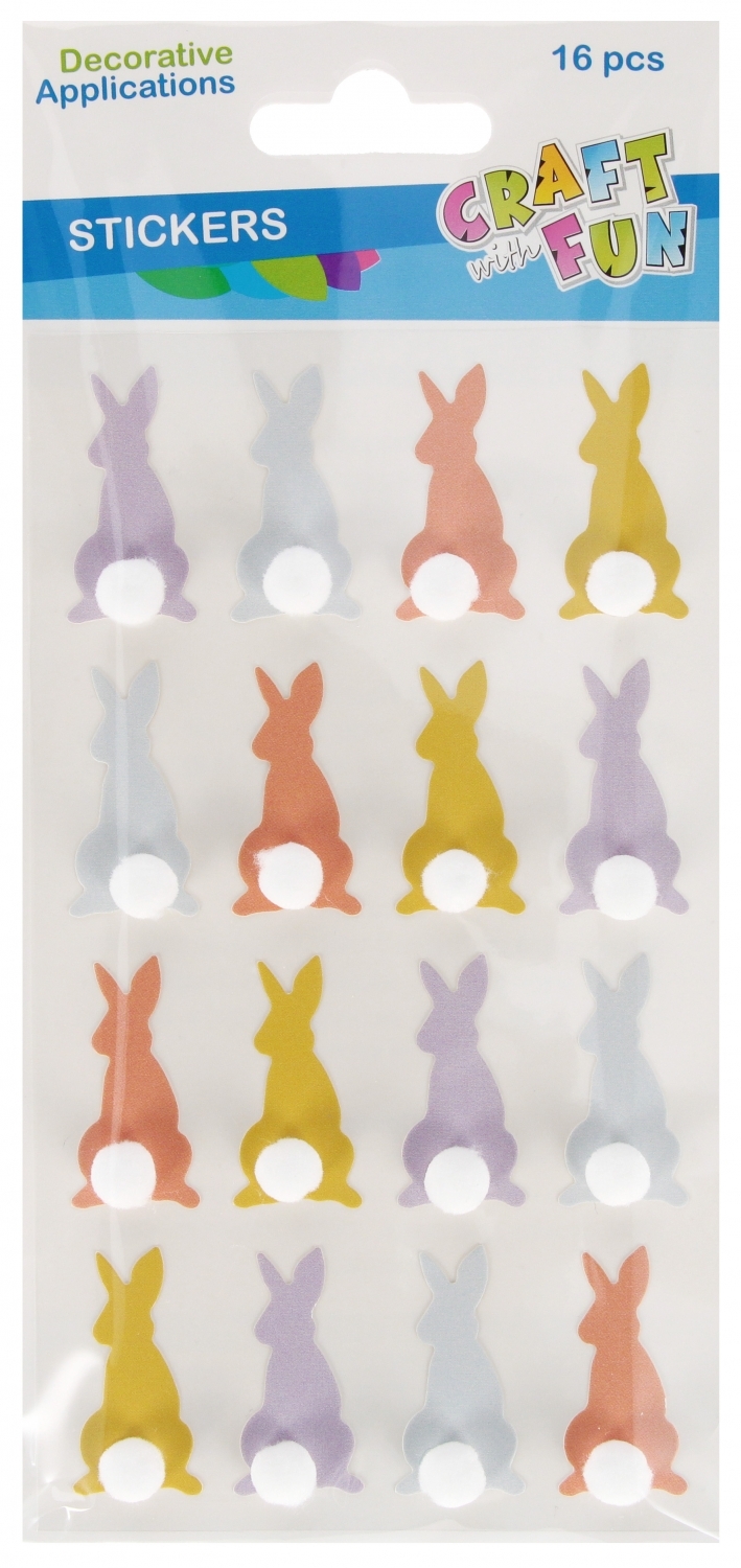 Ozdoba dekoracyjna naklejki Królik z pomponem Wielkanoc op.16 szt. CRAFT WITH FUN 553721