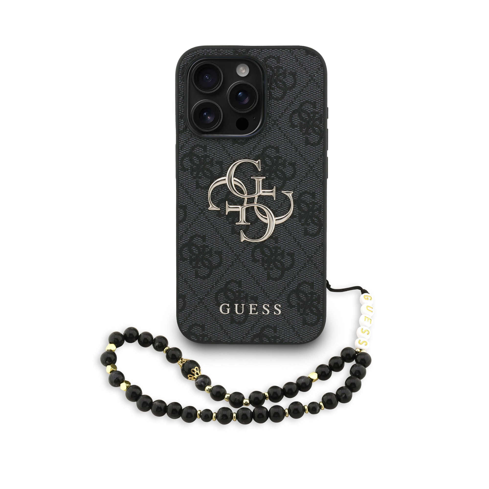 Guess PU 4G Metal Logo Strap Zadní Kryt pro iPhone 15 Pro Max Black