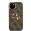 Guess PU 4G Metal Logo Stand Camera Frame Zadní Kryt pro iPhone 13 Brown