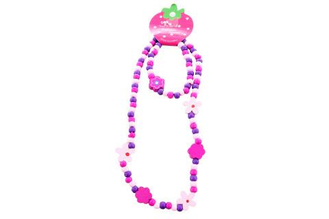 Sada doplňků pro malé parádnice se kytičkami. Sada obsahuje náhrdelník a náramek z dřevěných korálků. Korálky jsou navléknuté na pružné gumičce, čili jsou přizpůsobivé. Velikost náhrdelníku 2x20 cm, velikost náramku 2x6 cm (měřeno bez natažení). Baleno v sáčku. Výrobek není hračka.