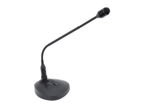 Konferenční mikrofon s kardioidní charakteristikou. Pro konferenční systémy, přednášecí pulty nebo do PA. Optimální srozumitelnost díky potlačení šumu. Husí krk možno ohnout na dvou místech. On/Off vypínač.
