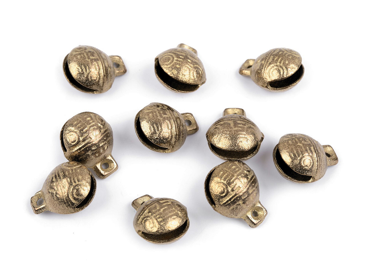 Mosazné rolničky s reliéfem poslouží jako zajímavá dekorace. Na svou velikost zvoní docela hlasitě a jasně. Využijete je na tvoření různých ozdob, dekorací, na vánoční stromeček apod. Nahoře mají otvor pro navlečení šňůrky, háčku nebo přišití. Jsou vhodné také na výrobu karnevalových nebo divadelních kostýmů.