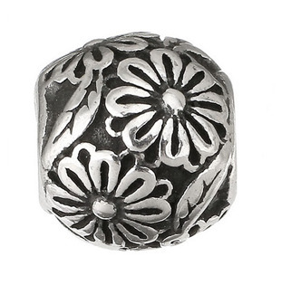 Korálek z oceli zdobený kytičkamiUrčeno pro navlékání na speciální šperky z naší kolekce náramků a řetízků určených k navlékání korálkůPomocí tohoto korálku a si můžete vytvořit originální šperk, který můžete měnit podle nálady a příležitelnosti. Stačí vyměnit korálky a máte nový originální...