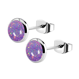 NB1-OP38 Ocelové náušnice, OPÁL 6 mm