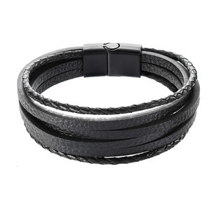 EG7512 Náramek pánský s koženkovými pásky - černá