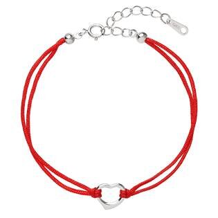 EG7237-R Červený náramek proti uhranutí stříbrné srdíčko - srdce