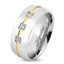 Ocelový prsten zdobený zlaceným motivem a zirkonypovrchová úpravamatnámateriálchirurgická ocelvelikost prstenu60barva kamenečirádruh kamenezirkonšíře prstenu8 mmVýrobceSperky4U prečítať celé
