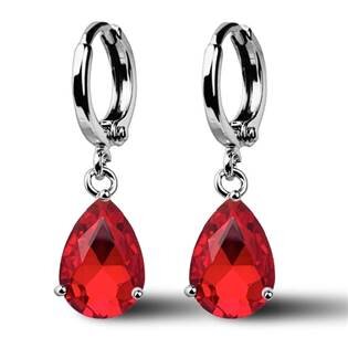 Třpytivé náušnice s červenými kubickými zirkony ve tvaru kapky