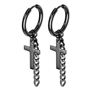 OPN1006-K Černé ocelové náušnice kroužky s křížky