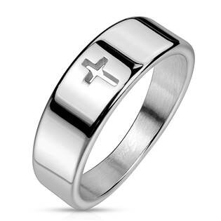 OPR0114-70 Ocelový prsten latinský kříž