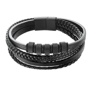 EG7511 Náramek pánský s koženkovými pásky - černá