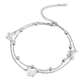 RN1135-ST Dvojitý ocelový náramek na nohu s motýlky