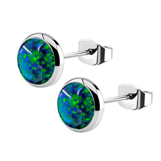 NB2-OP19 Ocelové náušnice s opálem 8 mm