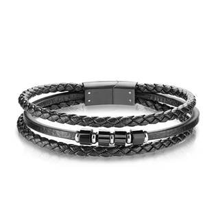 NR1225-19 Kožený náramek s černými komponenty, délka 19 cm