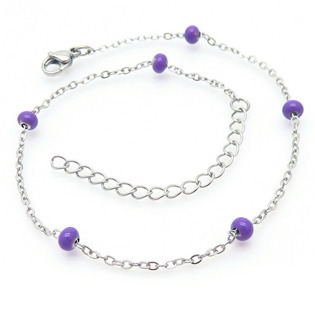 RN1158 Ocelový náramek na nohu s fialovými korálky