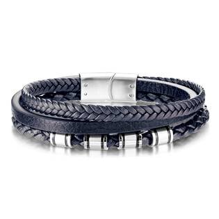 NR1226-21 Modrý kožený náramek s ocelovými komponenty, délka 21,5 cm