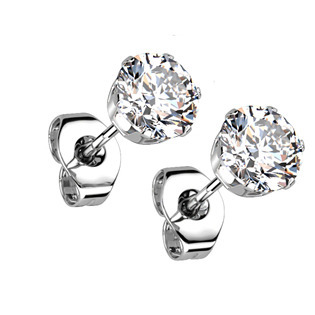 OPN1900-05 Ocelové náušnice - čiré zirkony 5 mm