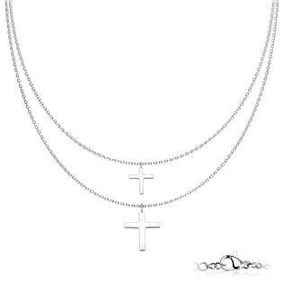 OPD0219-ST Dvojitý ocelový náhrdelník s křížky
