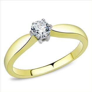 AL-0040-55 Zlacený ocelový prsten se zirkony