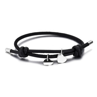 Tento krásně zpracovaný černý náramek je vyrobený z kvalitní systetické kůže a je doplněný dvěma nerezovými přívěsky ve tvaru srdíček s vysoceleštěným povrchem.