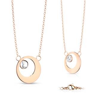 OPD0181-RD Zlacený ocelový náhrdelník kroužek se zirkonem