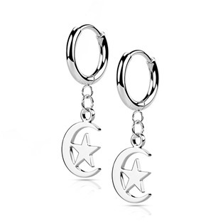OPN1823-ST Ocelové náušnice - měsíc s hvězdou