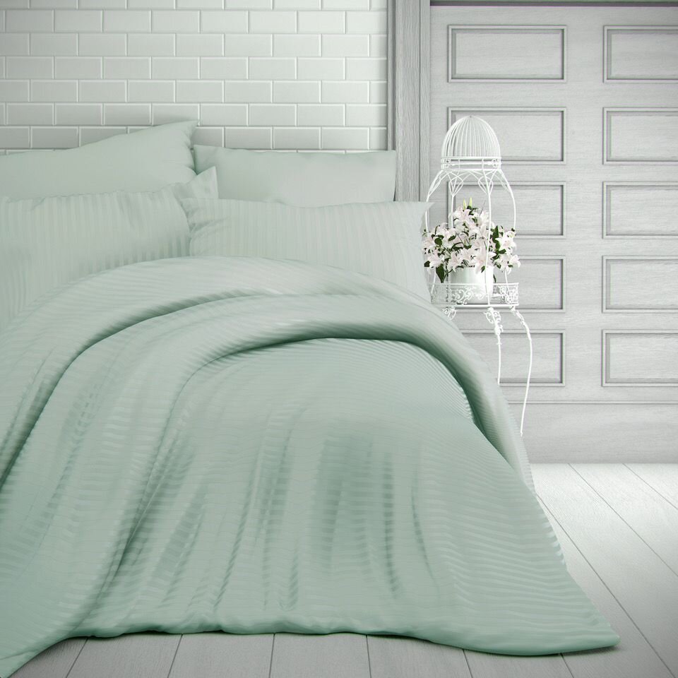 Saténové prodloužené povlečení s proužkem 140x220, 70x90cm OLIVOVÉ