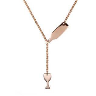 OPD0143-RD Zlacený ocelový náhrdelník "lahev vína"