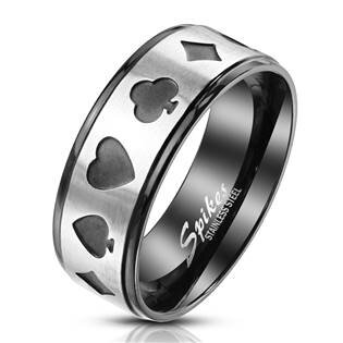 OPR1763-70 Ocelový prsten karetní motivy - hazard
