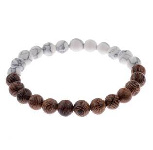 Pánský ručně vyrobený korálkový náramek vyrobený z korálků přírodního minerálu Howlit a dřevěných korálků