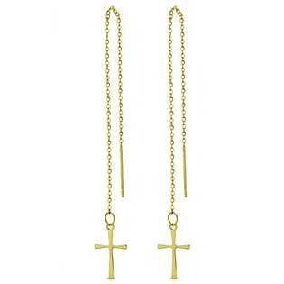 OPN1526-GD Provlékací zlacené ocelové náušnice s křížky