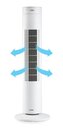 Ovládanie ventilátora je maximálne pohodlné vďaka diaľkovému ovládaču, ktorý umožní nastaviť jednu z troch rýchlostí aj z väčšej vzdialenosti. Navyše elektronický časovač je možné nastaviť až na 7 hodín, takže si môžete užívať príjemný chlad bez starostí o vypnutie prístroja. Nízka hlučnosť od 38 do 48 dB zaručuje, že vás ventilátor nebude rušiť ani v noci, a vďaka nízkej spotrebe len 35 W zároveň šetrí vašu elektrinu.