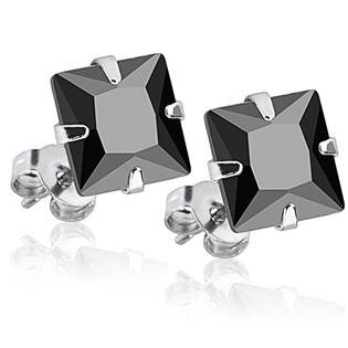 OPN1606 Ocelové náušnice - černé zirkony 6x6 mm