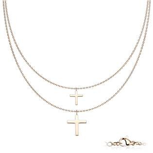 OPD0219-RD Dvojitý zlacený ocelový náhrdelník s křížky