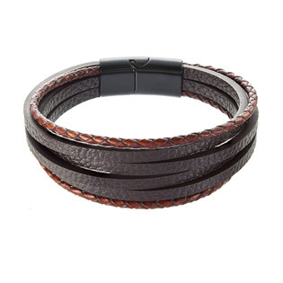 EG7513 Náramek pánský s koženkovými pásky - hnědá