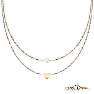Dvojitý dámský ocelový náhrdelník dekorovaný srdíčkem a syntetickou perličkou