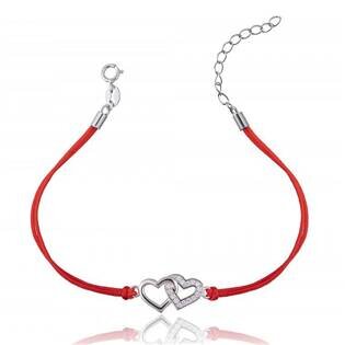 Textilní náramek dekorovaný přívěškem ve tvaru srdíček, který je vyroben z rhodiovaného stříbra 925/1000 a je zdoben kubickými zirkony čiré barvy.