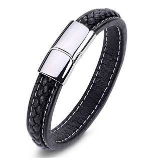NR1167-17 Kožený prošívaný náramek černý