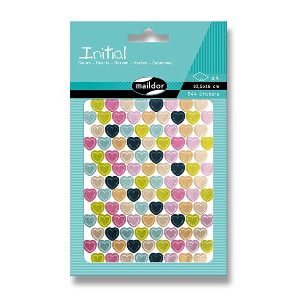 Samolepky Maildor Initial Metallic menší velikosti s motivem srdíček s metalickým efektem. Balení obsahuje 4 listy, 2 motivy po 2 ks.Rozměry balení: 10,5 x 16 cm. prečítať celé