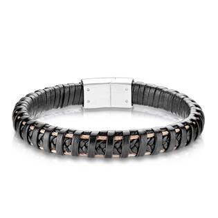 NR1221-20 Kožený náramek s ocelovou sponou, délka 20 cm - černá
