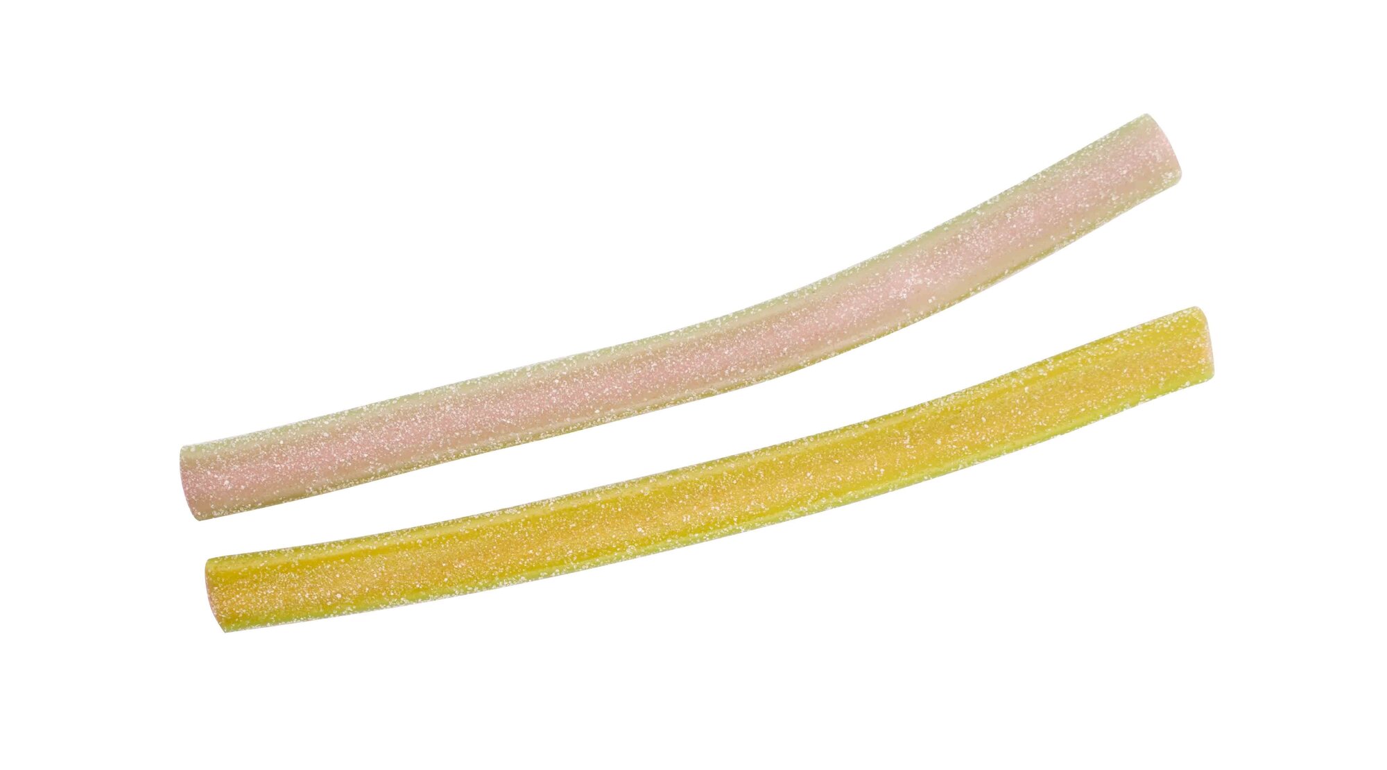Složení: cukr, glukózový sirup, pitná voda, pšeničná mouka (obsahuje lepek); kukuřičný škrob, palmový tuk, maltodextrin, kyseliny: E330, E296, E270; regulátory kyselosti: E331, E325; aromata, želatina; emulgátor: E471; konzervant: E202; barviva: E100, E120, E133.