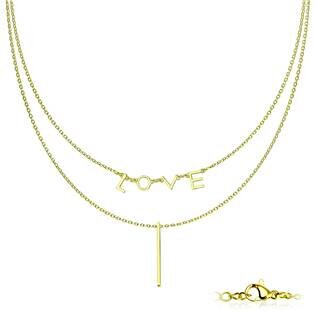 Dvojitý dámský ocelový náhrdelník dekorovaný textem LOVE a přívěškem podlouhlého tvaruŠperk je vyroben z chirurgické oceli 316L a má povrchovou úpravu v barvě žlutého zlatapovrchová úpravažluté zlatomateriálchirurgická ocelurčenídámskýdélka náhrdelníku48 cmVýrobceSperky4U