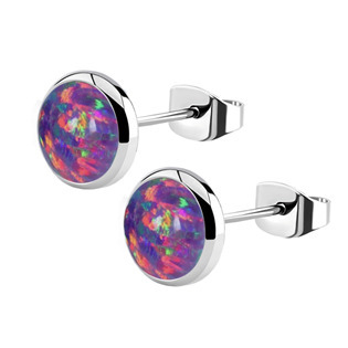 NB2-OP39 Ocelové náušnice s opálem 8 mm