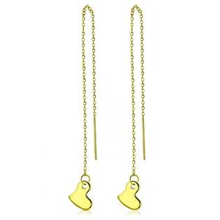 OPN1425-GD Provlékací zlacené ocelové náušnice se srdíčky - srdce