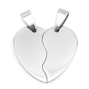 2 kusy párových ocelových přívěšků - zlomené srdceNa zakázku lze na přívěšeky vyrýt text diamantovým hrotem nebo laserem. Maximální délka textu (jména) je 8 znaků, aby bylo jméno dobře čitelné.Obě poloviny přívěšku mají lesklou povrchovou úpravuOcelový přívěšek je vyroben z chirurgické oceli s...