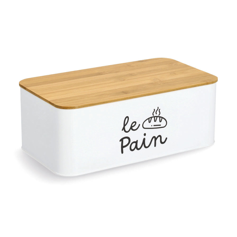 ZELLER Chlebník kovový s bambusovým víkem bílý 33,8x19,3x12,5cm
