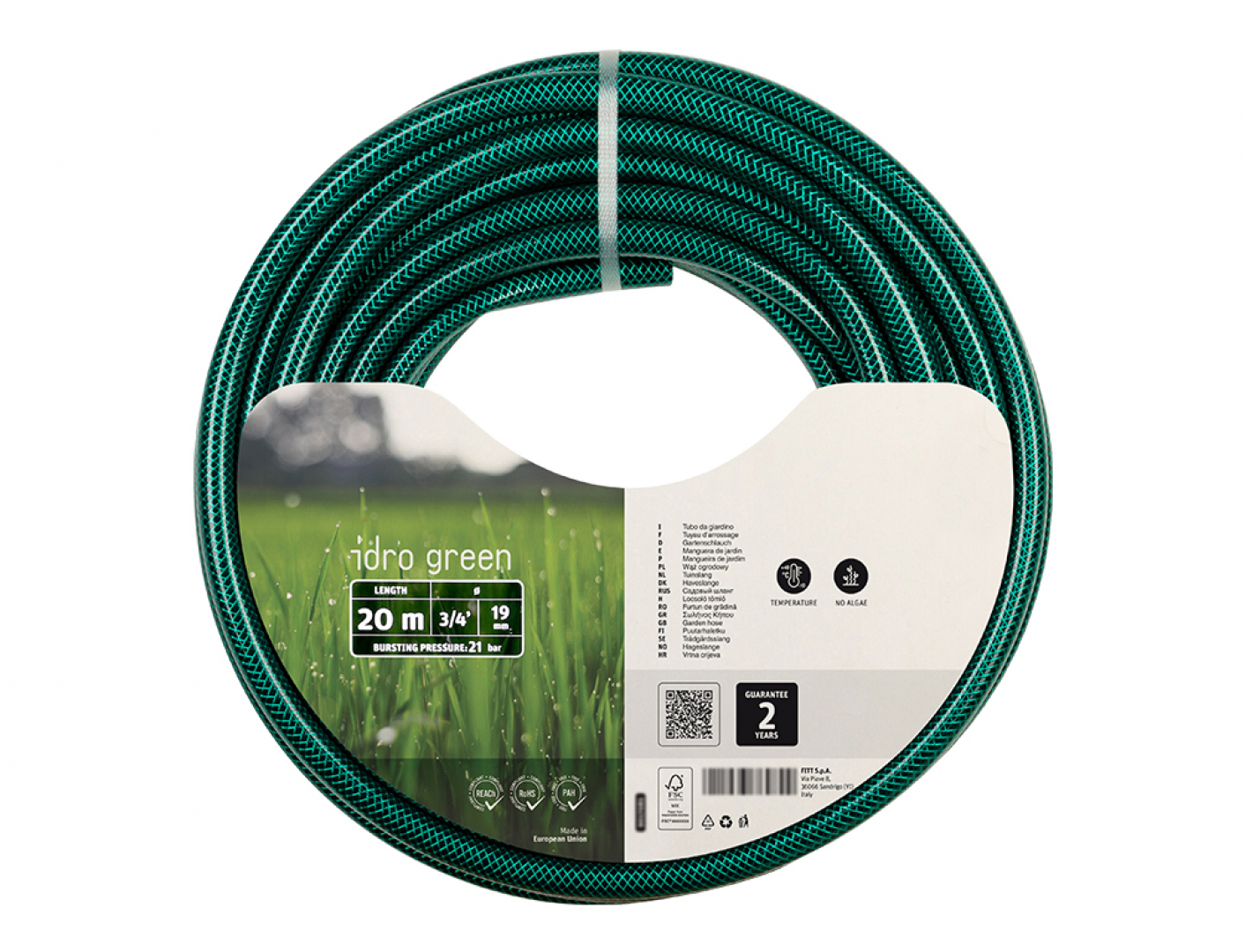 Zahradní 3/4 hadice s průhlednou zelenou vnější vrstvou, pletenou textilní výztuhou a černou vnitřní vrstvou proti řasám. Poruchový tlak: 21 barů. Délka: 20 m. Barva: zelená. prečítať celé