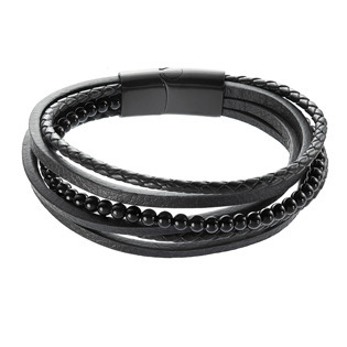 Populárním módním doplněkem pro muže je náramek složený z více pásků různého tvaru a materiálu. Vkusně tak doplní Váš outfit a přitáhne zaslouženou pozornost. Pánský náramek je vyrobený ze šesti různě tvarovaných pásků z černé recyklované kůže a černých korálků.Zapínání je ozdobné černé a...