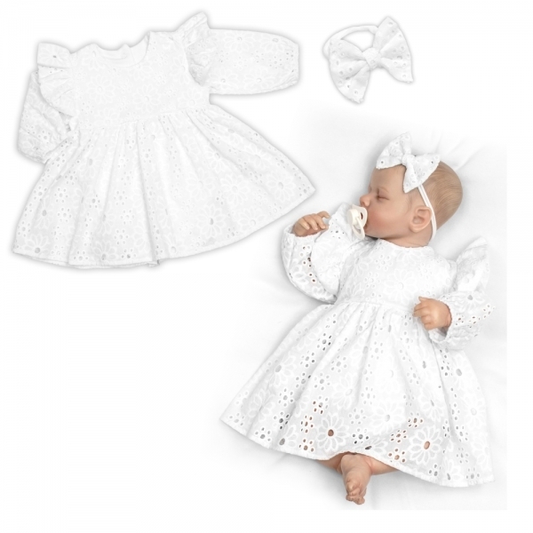 Sukničkobody s volánkem + čelenka Laura, dl. rukáv, Madeira, 2D sada, bílé; 56/62 (0-3m)